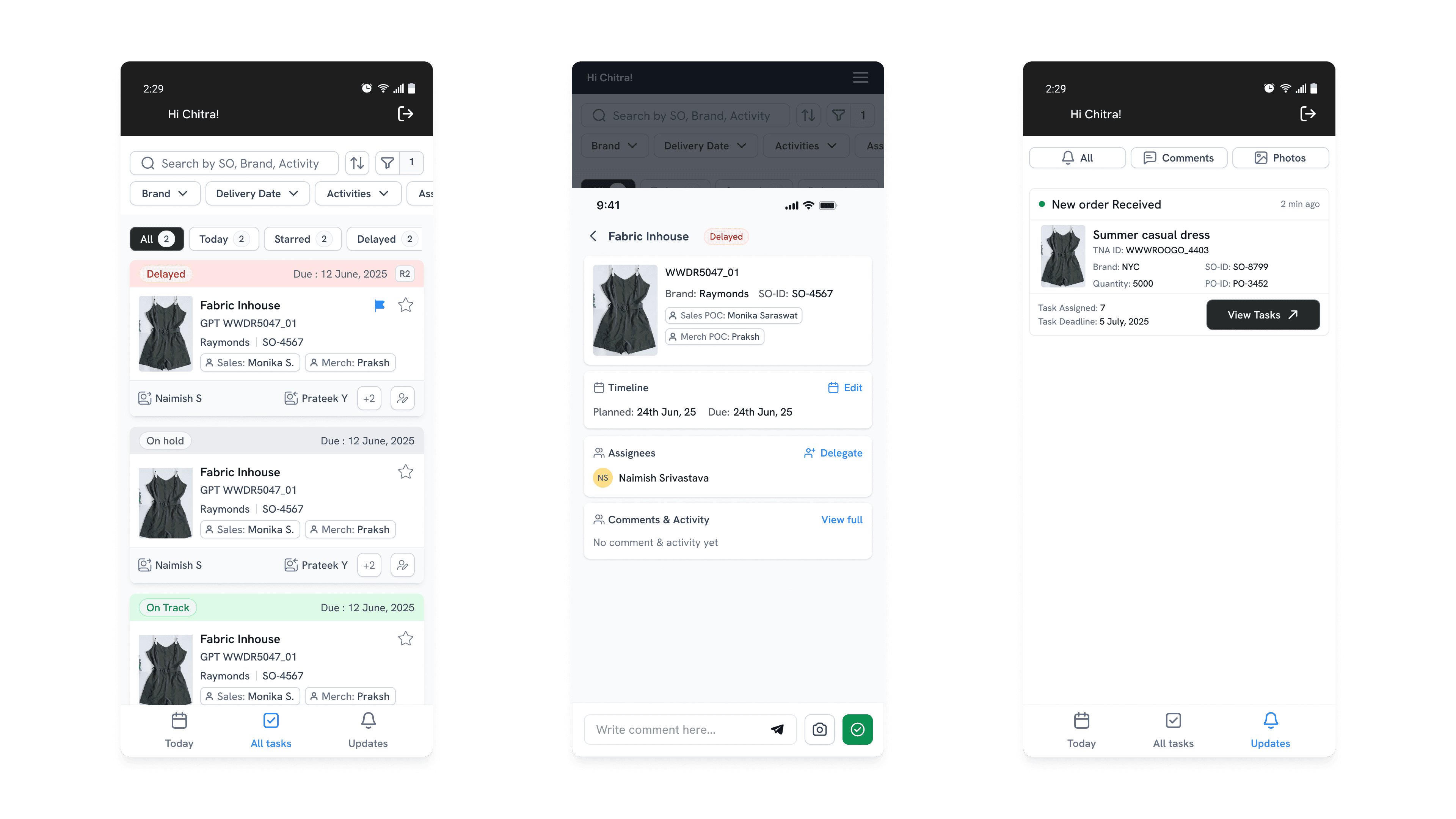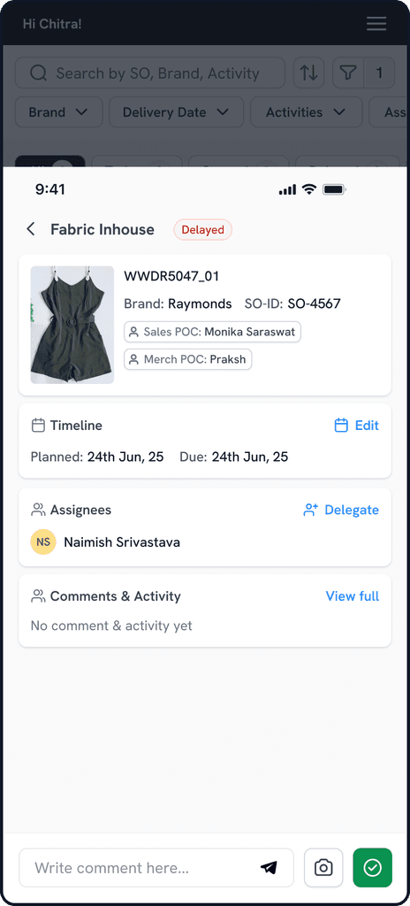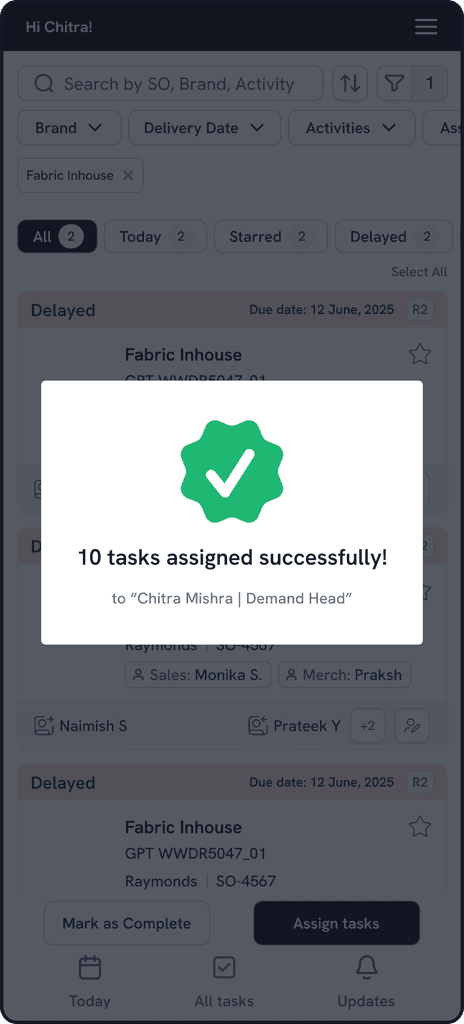 All teams, merchandising to procurement & production have visibility over every orders, tasks.