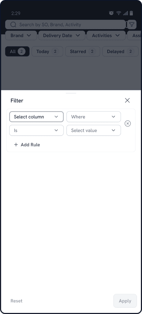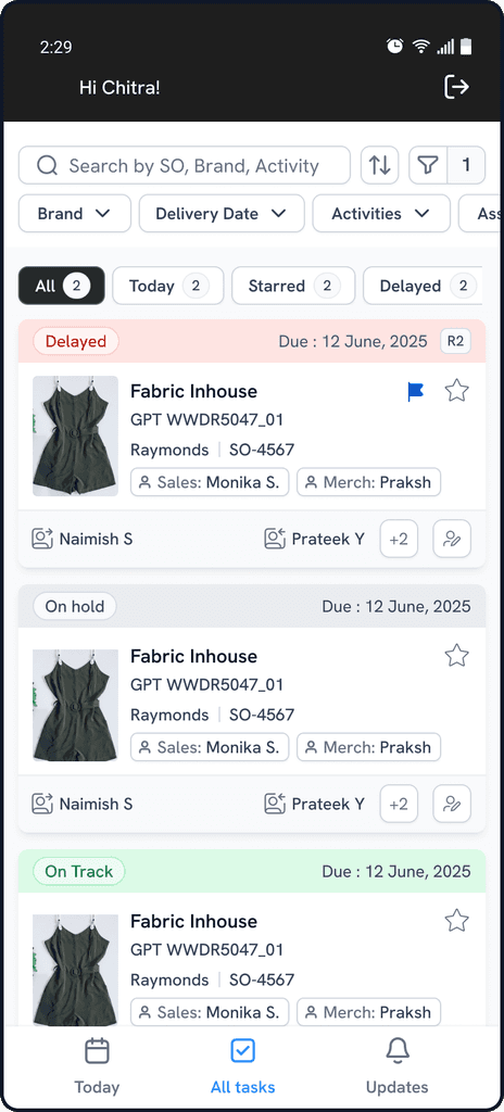 Instantly shows which style/order/stage is delayed, needs attention, or is on track.