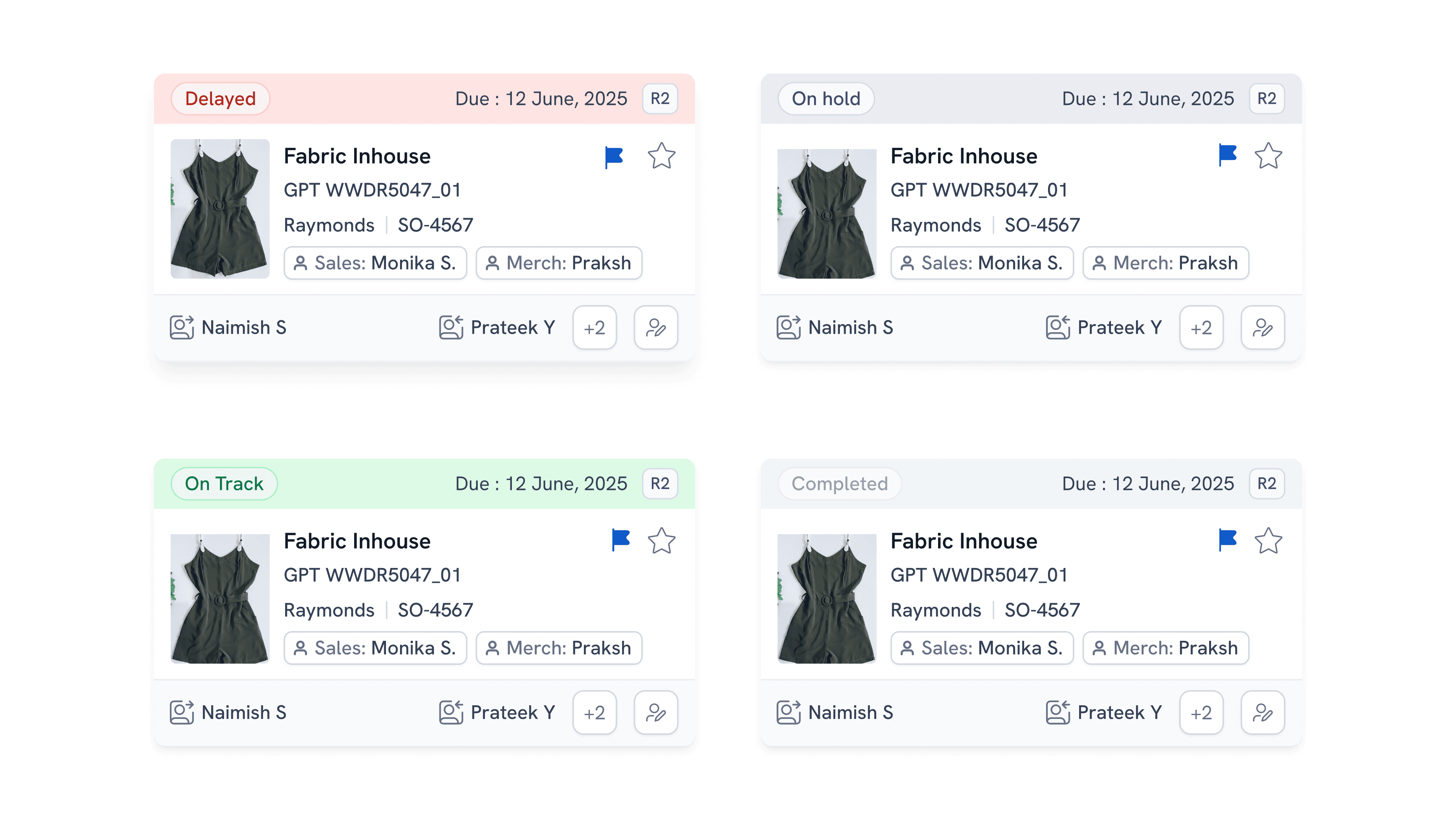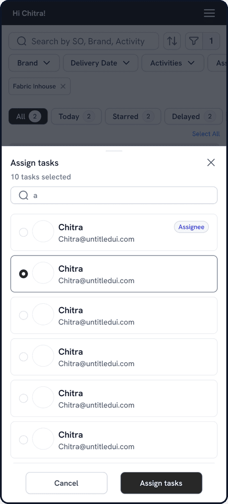 All-in-One Context: Cards combine brand, style, contacts, and assignment details so users see what, who, and why without extra clicks.