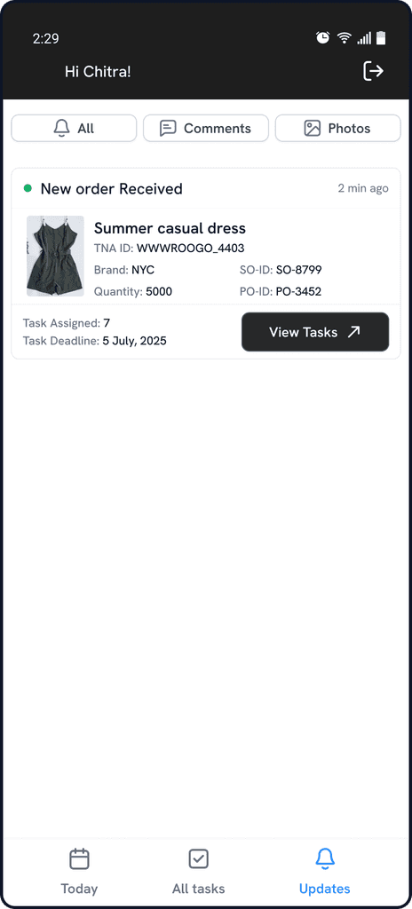 Seamless Notification-to-Action: New order notifications list assignment counts and deadlines, with a direct "View Tasks" button that streamlines users straight into actionable context.